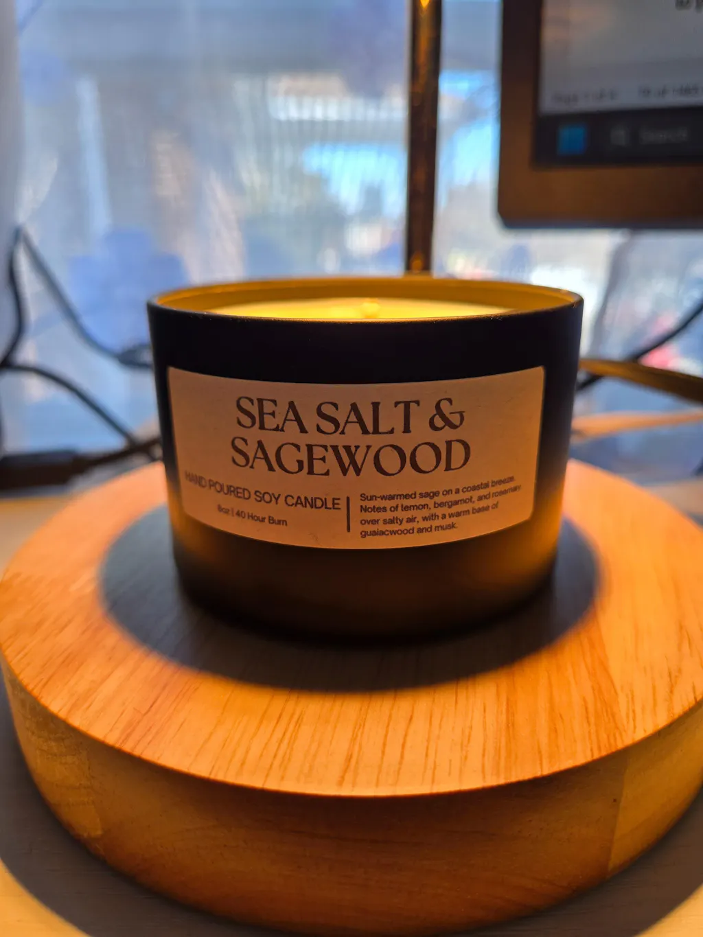 A crisp, coastal fragrance that brings the feeling of open air and wild sage into your home. Our Sea Salt & Sagewood hand-poured soy candle is crafted in Ottawa using premium eco-friendly soy wax for a clean, long-lasting burn. Perfect as an everyday Ottawa-made candle or a thoughtful gift for anyone who loves fresh, earthy fragrances.